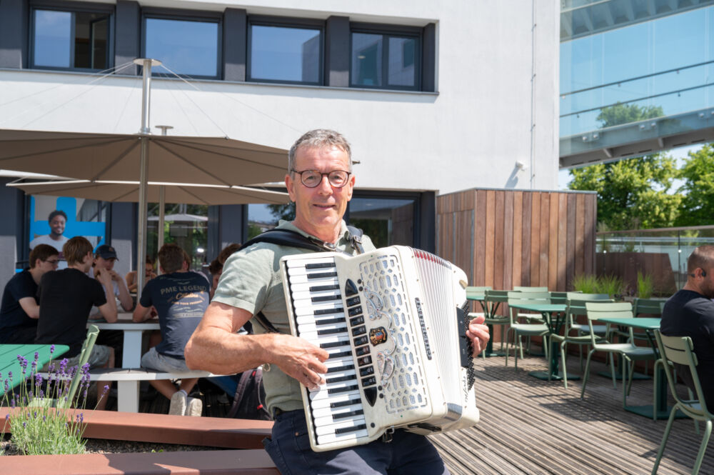 Hij toert met zijn accordeon én orkest langs Zeeuwse verzorgingshuizen, geeft workshops Hongaarse volksdans, speelt piano, percussie en zingt.