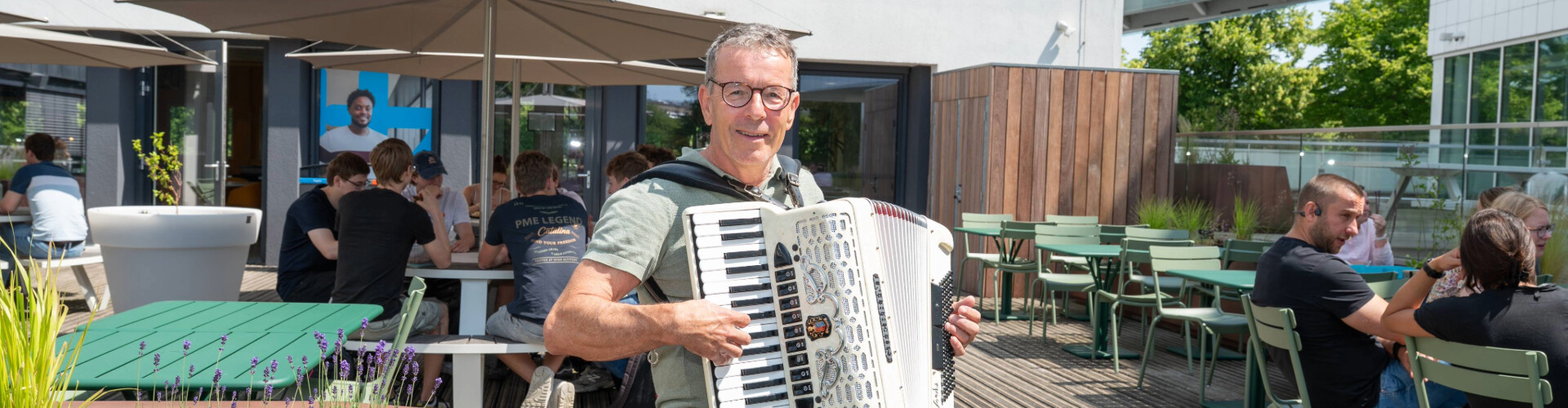 “Laatst speelden we een Macedonisch nummer in het Scheldehof. Er zat een vrouw vooraan, die in een vergevorderd stadium van dementie verkeerde. Ze stond op, begon te dansen en deed álle pasjes op de automatische piloot. Of een oude operazanger die We’ll Meet Again woord voor woord - en met volle kracht - meezingt. Dat iemand op zo'n moment iets in zichzelf terugvindt wat hij of zij kwijt was; dat vind ik prachtig. Maar weet je waar ik net zo goed van geniet? Wanneer mensen langzaam in slaap vallen op hun stoel. Dan zijn ze helemaal op hun gemak bij de klanken van de muziek. Dan is het goed. Heerlijk, toch?”